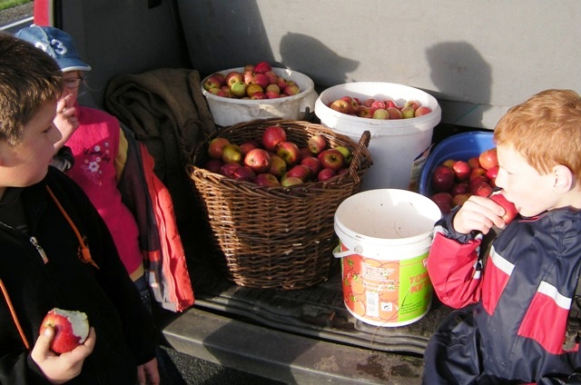 Wie der Apfelsaft in die Flasche kommt, das erfuhren die Kinder der Freien Schule Bredelem am letzten Schultag vor den Herbstferien. Fleißig pflückten sie bei schönstem Sonnenschein Äpfel und innerhalb von nur zwei Stunden kamen so ca. vier Zentner der runden Früchte zusammen.